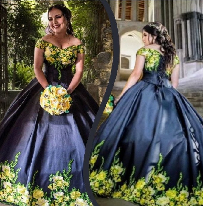 Quinceanera Dress Black Black Sparkly Quince Dress Vestido De 15 Anos Negro Quincenera Dress Black Vestido De Quinceanera Negro 3d Ball Gown Etsy